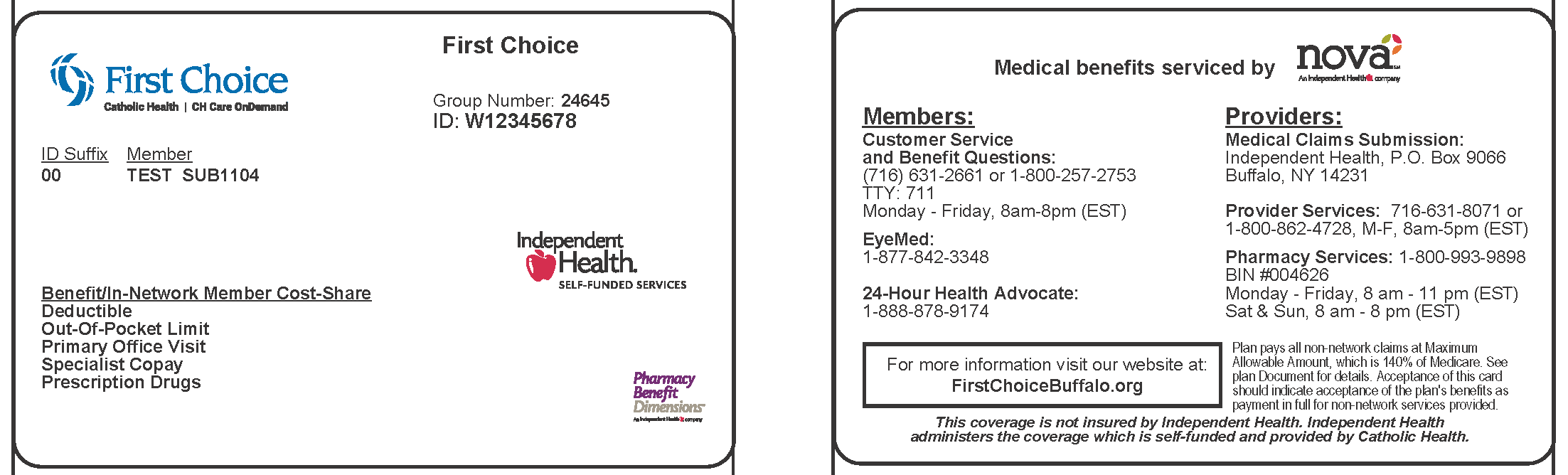 If you are a First Choice member, please provide the subscriber’s name and employer and your group number and ID number. This information can be found on your First Choice ID card.